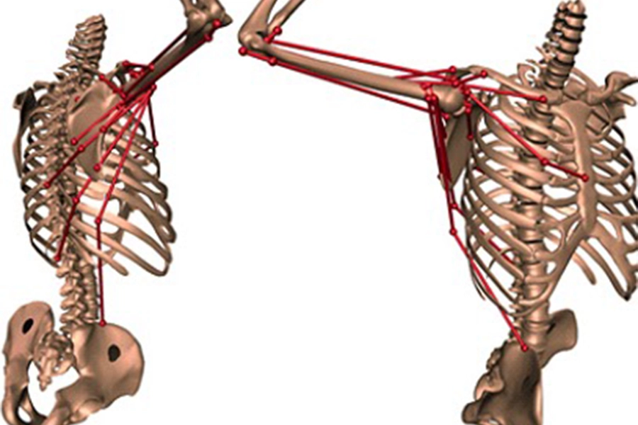 本研究發展一套結合肩關節與肘關節之肌肉力學分析系統 ,利用動作分析系統所得之肢體活動資料,求得肢體在空間中之運動學資料如速度 、加速度及關節承受之作用力與力矩,結合肌肉骨骼模擬系統之運動情形, 計算肌肉走向及旋轉力臂,並配合肌肉之生理參數及利用數值運算方法,求得肌肉在動態時收縮產生的力量。